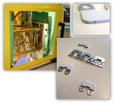 - Vereinzeln und Umspritzen des Kontaktes von der Spule in der Spritzgussmaschine -> fertig fallende Teile.